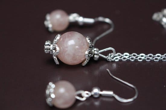 Prachtige verzilverde set van ketting en oorbellen met daarin het zeldzame aardbeienkwarts verwerkt. Heeft een mooie en vooral chique uitstraling!